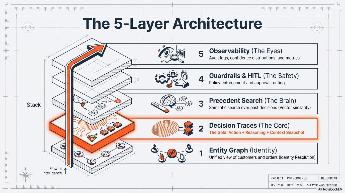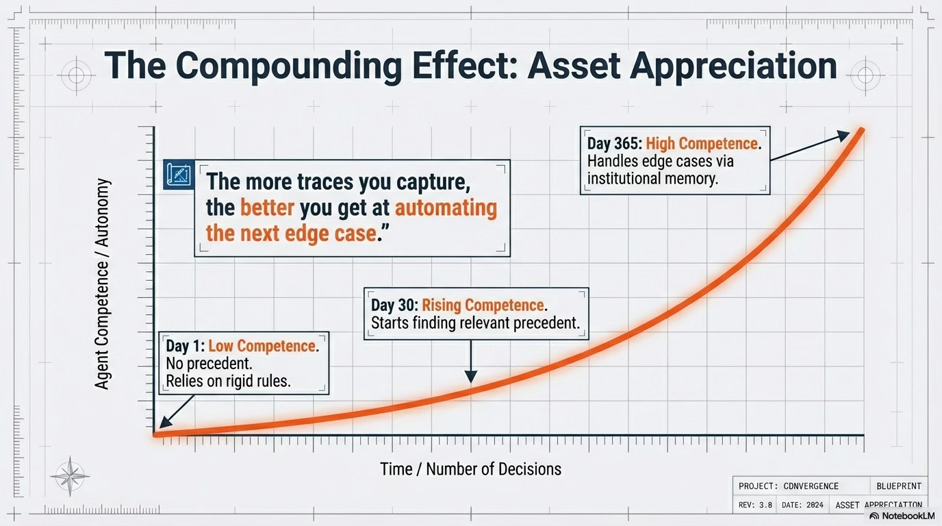 effect beautifully: more decisions → more traces → better precedent → smarter agents.